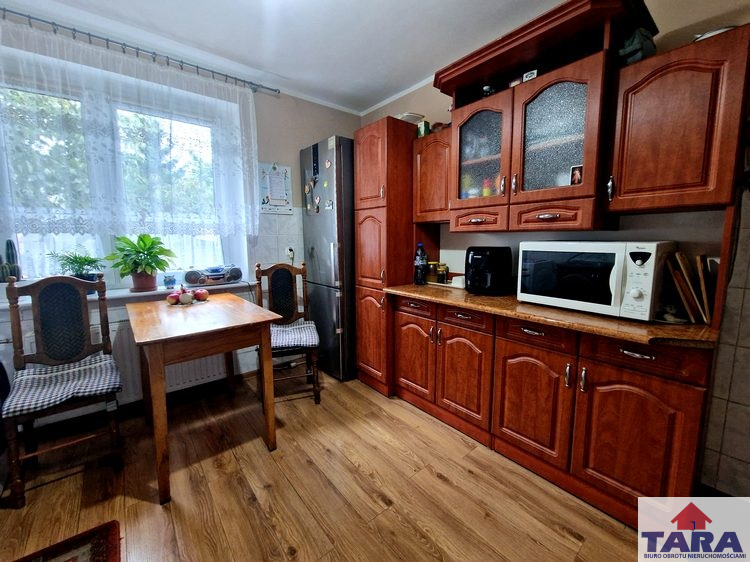 Podłogi w panelach i płytkach. Schody na piętro drewniane bardzo wygodne. Na działce zbudowany murowany piętrowy budynek gospodarczy z garażem i innymi pomieszczeniami częściowo podpiwniczony. Ponadto wiata metalowa drewutnia, oraz murowany kompostownik. Prosto do wjazdu usytuowany garaż blaszany z bramą w kolorze drewna, obok drugi garaż. Całość ogrodzona, wjazd wyłożony kostką brukową, dojazd asfaltowy.