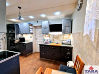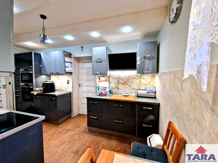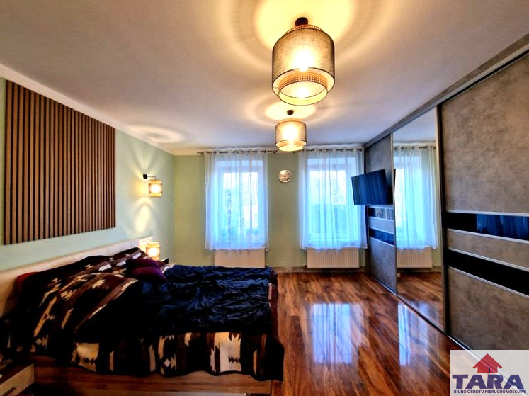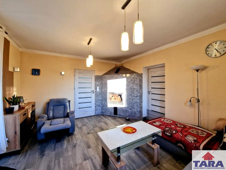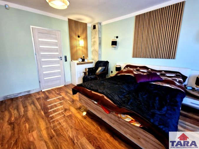 1. Pierwszy dom mieszkalny o powierzchni ok 100m2 przeszedł kapitalny remont w największych szczegółach. Jest komfortowy w użytkowaniu bez konieczności dodatkowych inwestycji. Ma dwa wejścia od ulicy i podwórza. Budynek kryty blachodachówką. Dach ocieplony wełną o grubości 30 cm, natomiast strop między częścią mieszkalną, a strychem posiada aż 40 cm izolacji. Posadzka na strychu w płytach OSB. Ściany zewnętrzne ocieplone 8 cm styropianem. Wszystkie instalacje wymienione wodna, kanalizacyjna, grzewcza. Nieruchomość podłączona do wodociągu gminnego, w piwnicy znajduje się stacja uzdatniania wody. Woda również wyprowadzona na zewnątrz budynku. Dodatkowym atutem jest strych z wyjściem na taras mieszczący się nad garażem. Dom oferuje przemyślany i wygodny układ pomieszczeń. Znajdują się tu korytarz, kuchnia ze spiżarnią dwa pokoje oraz sypialnia. Kuchnia w zabudowie wykonanej pod wymiar pomieszczenia. W domu zainstalowane ogrzewanie podłogowe i kaloryfery.