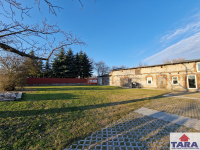 · Solidny budynek gospodarczy z cegły, który pełni funkcję magazynową, warsztatową, gospodarczą i garażową dla dwóch samochodów.