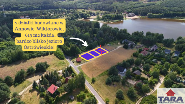 Oferujemy na sprzedaż 2 działki budowlane o powierzchni 619 m2 każda położone w Annowie-Wiktorowie blisko jeziora Ostrówieckiego. Działki graniczą ze sobą, dlatego jest możliwość zakupu 2 nieruchomości, jeśli zależy Ci na większej powierzchni.