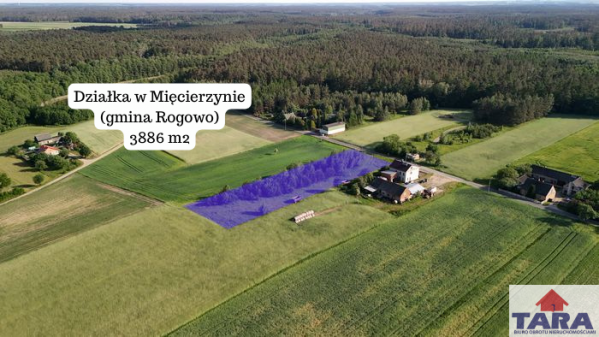 Biuro Pośrednictwa Tara oferuje na sprzedaż niezabudowaną działkę o powierzchni 3886 m2 położoną w Mięcierzynie, gmina Rogowo. Właściciel wystąpił o warunki zabudowy. Woda w drodze, prąd w działce. Działka nie jest ogrodzona. Nieruchomość bardzo dobrze zlokalizowana. Czysta i spokojna okolica gwarantuje ciszę i kontakt z naturą. Do trasy S5 ok 5 km. W miejscowości znajdują się market spożywczy i szkoła. Nieruchomość wara zainteresowania! Można wybudować dom lub ulokować kapitał.
