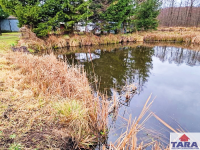 Biuro pośrednictwa Tara w Żninie przedstawia ofertę sprzedaży działki o powierzchni 4930m2 na której zlokalizowany jest staw wielkości ok 550m2. Na działce posadowiony jest domek holenderski pow. 14x4m, rozbudowany o pokój i kotłownię. Mury dobudówki ocieplone styropianem 5 cm. W domku są następujące pomieszczenia: pokój z kuchnią, pokój, pokój, łazienka, wc, dwa pomieszczenia gospodarcze. W każdym pomieszczeniu są grzejniki i podgrzewana podłoga. Na działce szambo ekologiczne, woda z wodociągu gminnego, prąd, siła (zabezpieczenie 3x25 amper), Internet plus. Na działce są ponadto blaszany garaż i wiata. Ostatni odcinek dojazdu do działki drogą polną. Od drogi działka ma ogrodzenie z bramą na pilota. Na gruncie występują następujące klasy bonitacyjne: Br720, RIVB 720m2, ŁąkaV2096m2, Pastwisko V920, N (nieużytek)404m2.